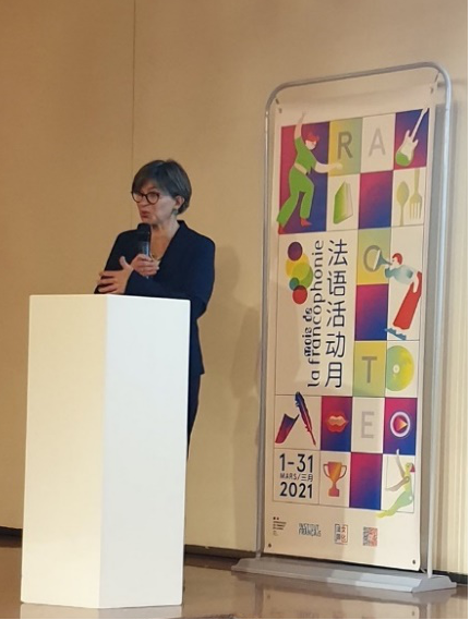 昆明法盟中方校长孙芳女士用中法双语朗读自己创作的新诗《无悔》