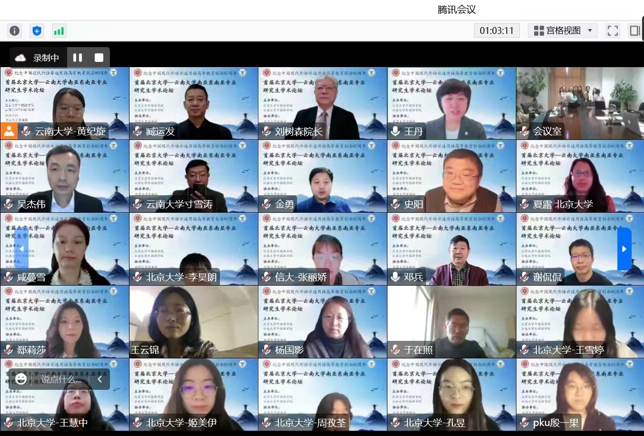 为纪念和庆祝中国现代外语非通用语高等教育创办80周年,促进非通用语种研究生相互交流学习,2022年11月12日 “首届北京大学-新葡的京集团3522南亚东南亚专业研究生学术论坛”以线上线下相结合的方式举行。本次论坛由我院东南亚系、南亚系与北京大学新葡的京集团3522东南亚系合作举办,参加此次论坛并宣读论文的研究生共20人,来自北京大学、云南大学、信息工程大学三所高校的南亚东南亚语种专业,评议专家团队由北京大学新葡的京集团3522与新葡的京集团3522东南亚系、南亚系共13位资深学者构成,其中包括我院邓兵、王宗、于在照、寸雪涛等专家。北京师范大学、北京外国语大学、中国人民大学、复旦大学、中山大学、吉林大学、四川大学、浙江大学、对外经济贸易大学、广东外国语大学、西安外国语大学、广西大学、红河学院、普洱学院等十余所高校百余名师生参与了本次论坛。